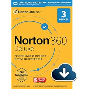 Norton 360 Deluxe, 2023 Ready, Antivirus software for 3 Devices with Auto Renewal – Includes VPN, PC Cloud Backup & Dark…