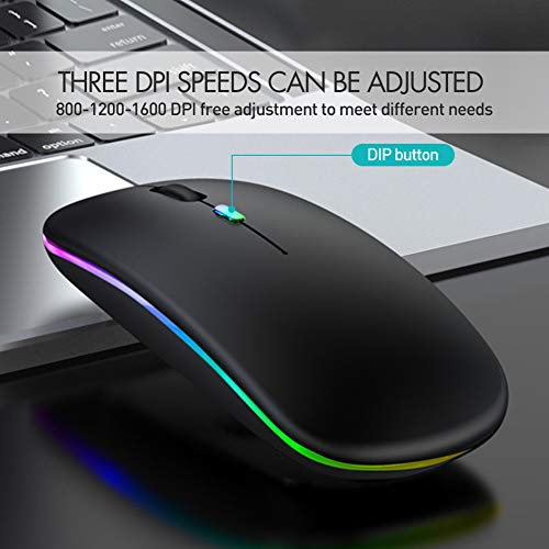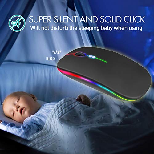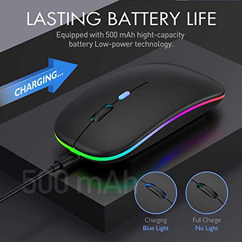 Mashiro LED Wireless Mouse, Rechargeable Wireless Noiseless Mouse with USB Nano Receiver, 3 Adjustable DPI Levels, 2.4G…
