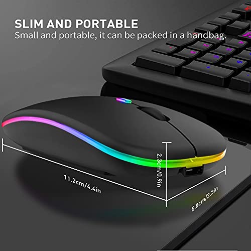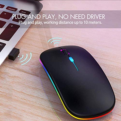 🖱️𝐏𝐋𝐔𝐆 𝐀𝐍𝐃 𝐏𝐋𝐀𝐘: No need to install any driver, just plug the USB receiver into your laptop or computer, the LED wireless mouse will start to work. 2.4GHz wireless technology provides a powerful and reliable connection, effective up to 10 meters of range.