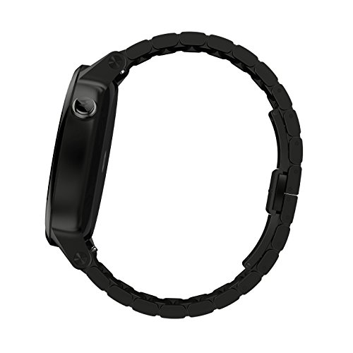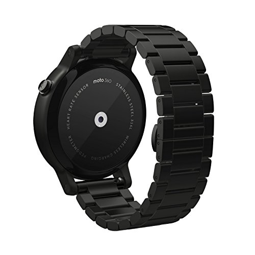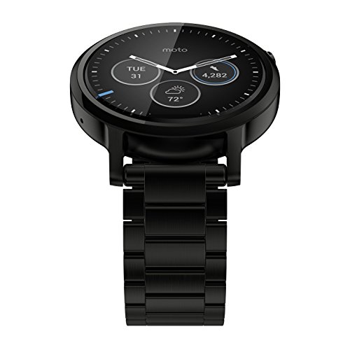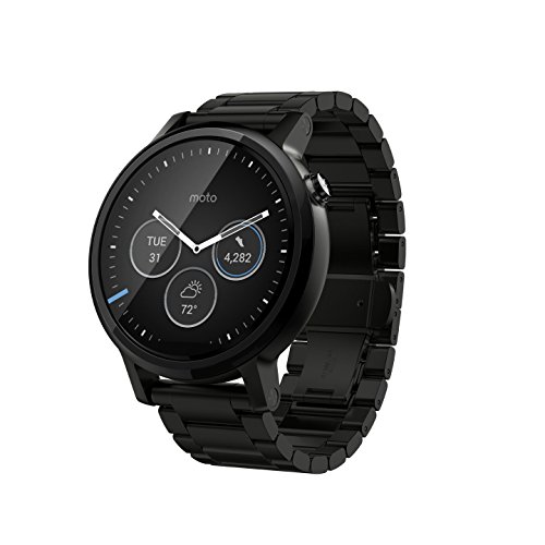 Black Chamfered Bezel, Updates, not interruptions: Stay connected and up to date by getting messages, news, weather, and more without constantly having to check your phone Customizable Watch Faces Water Resistant to 3.3-Ft Button-Free Voice Control Compatible with Android and iOS, Bluetooth 4.0 LE, 802.11b/g Wi-Fi Android Wear OS, Moto Body fitness tracker: Keep fit by tracking your steps, calories, and heart rate right from your wrist