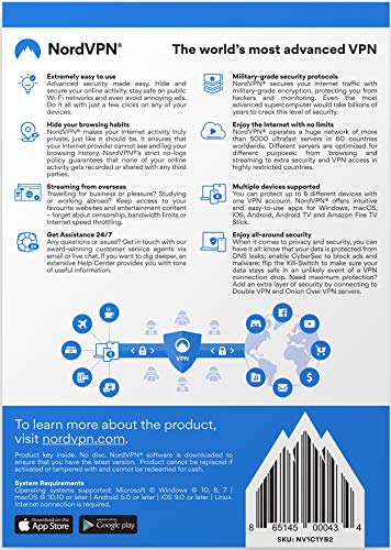 NordVPN Standard – 1-Year VPN & Cybersecurity Software Subscription For 6 Devices – Block Malware, Malicious Links & Ads…