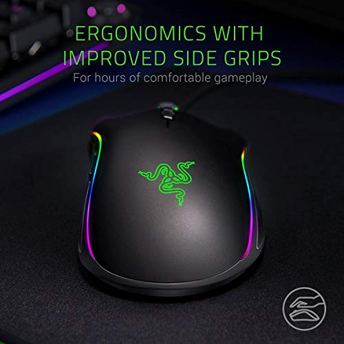 The Razer Mamba Elite features our acclaimed Razer 5G advanced optical sensor with true 16, 000 DPI and Razer Mechanical mouse switches with extended durability of up to 50 million clicks. Get more control with 9 programmable buttons, Each one easily configured through Razer Synapse 3, and save up to 5 profiles to your mouse with on-board memory. With extended Razer Chroma lighting Zones along each side of your mouse, customize with preset lighting effects or create your own From 16.8 million color options. Hybrid on-board memory and cloud storage.
